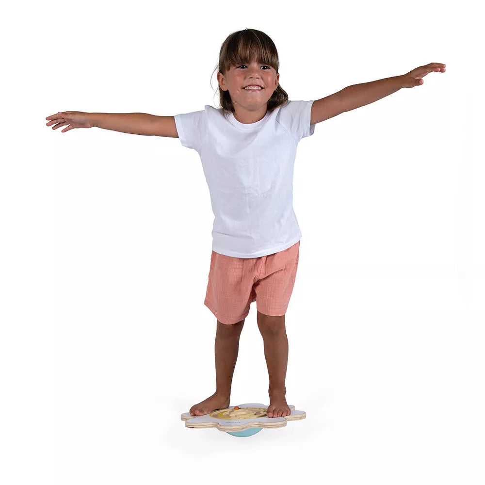 Tabla de equilibrio infantil con motivos florales de la colección Sweet Cocoon de Janod.