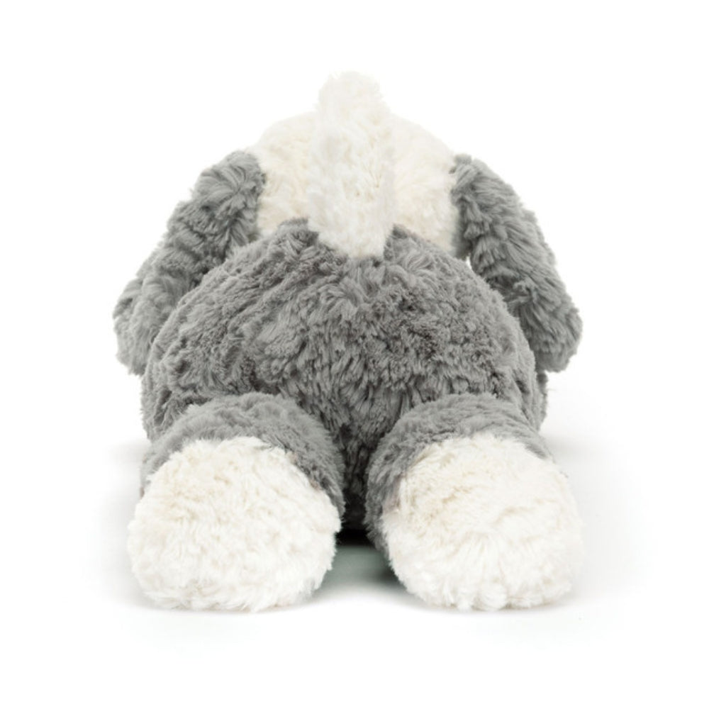El peluche Jellycat Tumblie Sheep Dog es un adorable compañero para el recreo y las aventuras diarias de los niños.