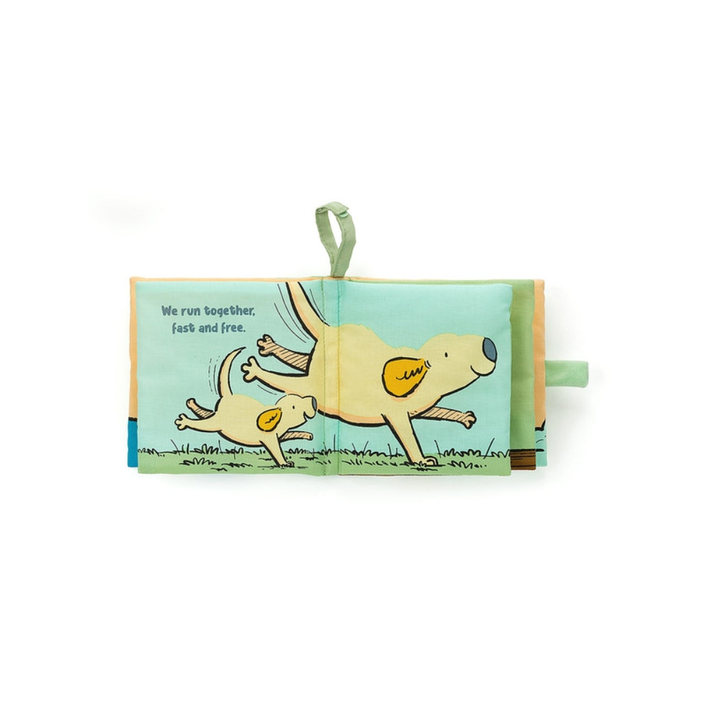 Daddy Loves Me es un libro sensorial único de Jellycat, fabricado con un tejido resistente que encantará con sus bonitas ilustraciones en inglés.