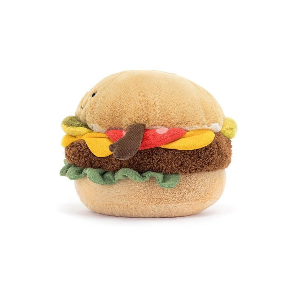 La mascota Jolly Burger de Jellycat es un peluche poco habitual que divertirá y encantará a cualquier niño.