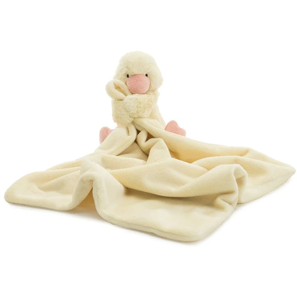 El patito tímido de peluche Jellycat de 34 cm es un adorable peluche agradable y suave al tacto.