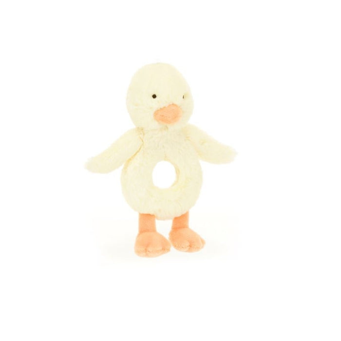 El sonajero para bebés Jellycat Shy Duckling de 18 cm es un adorable sonajero de peluche agradable y suave al tacto.
