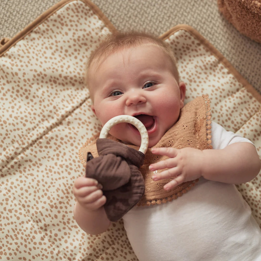 El cambiador portátil Boucle Naturel Beige de Jollein es suave, impermeable y muy elegante.