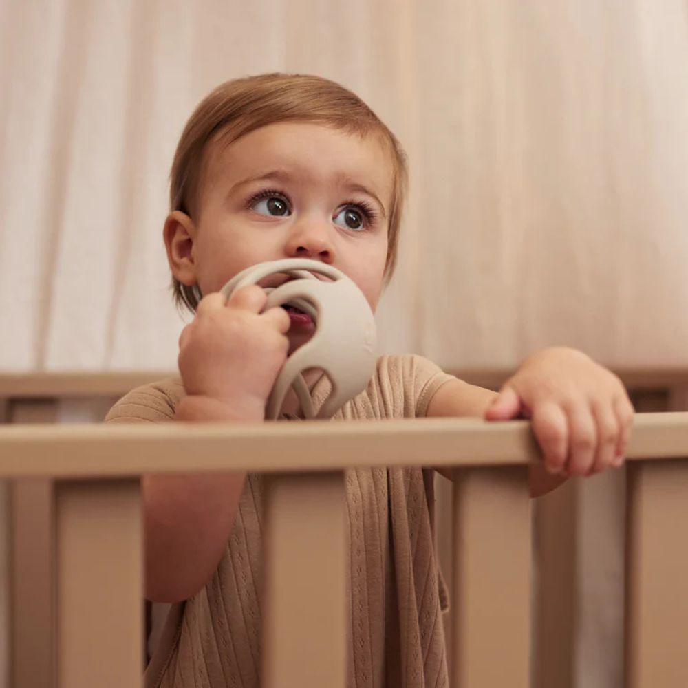 Es un mordedor para bebés que combina seguridad, comodidad y estilo en uno.