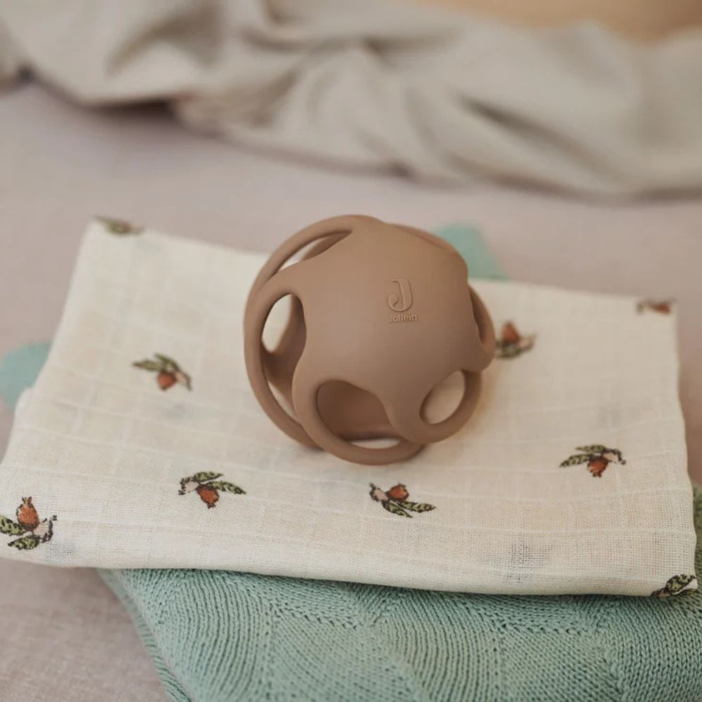 Este exclusivo mordedor para bebés con forma de bola de silicona es ideal para los niños pequeños que están empezando a dentar y a descubrir el mundo con las manos y la boca.