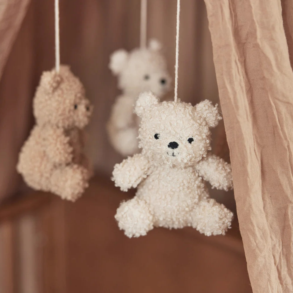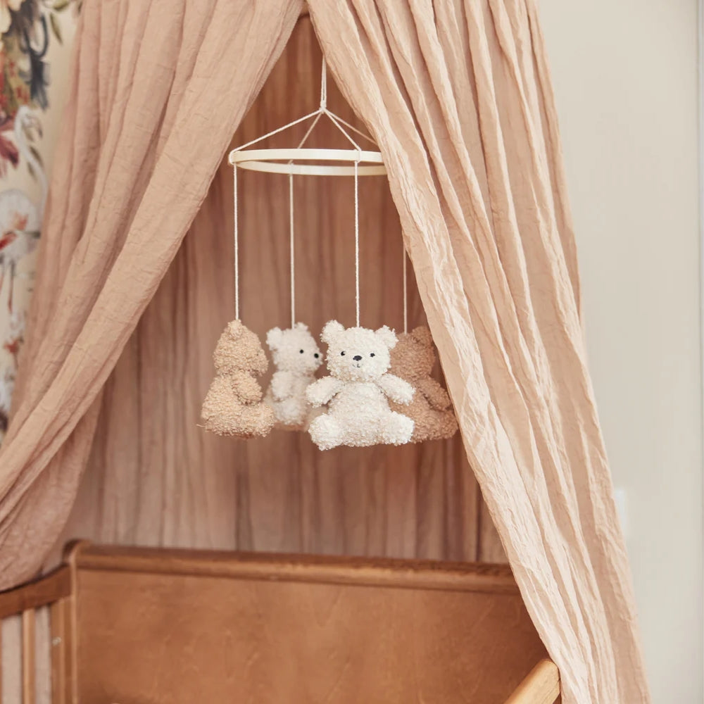 Un adorable carrusel para cuna Naturel Biscuit Brown Jollein con ositos de peluche, perfecto para tu pequeño.