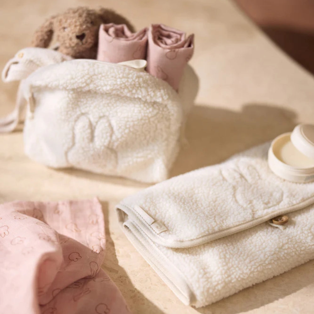 El cambiador portátil Teddy Miffy Oatmeal de Jollein es suave, impermeable y muy elegante.