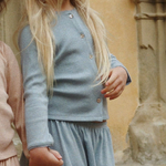 El tejido de punto suave y elástico hace que el jersey para niñas se ajuste perfectamente y se puede llevar solo como blusa o como prenda clásica para cubrirse.