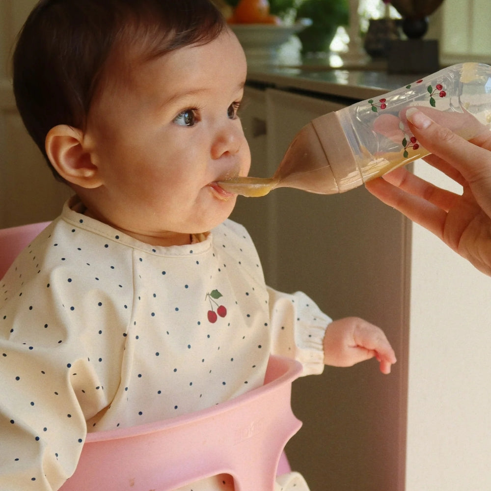Konges Slojd setzt auf eine Kombination aus niedlichem Design und Funktionalität, so dass dieses Lätzchen sowohl zu Hause als auch unterwegs gut funktioniert.