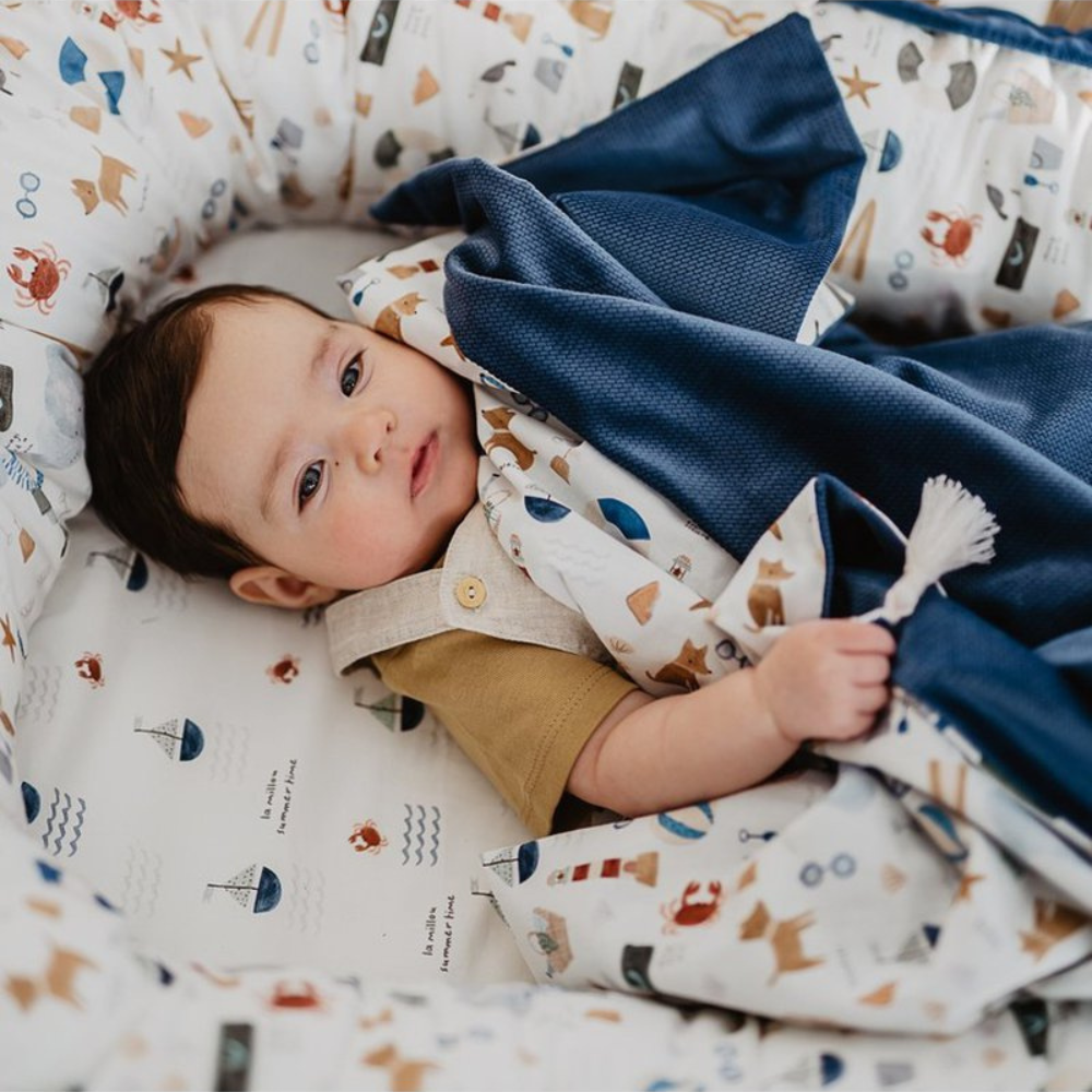 La manta para bebé de La Millou está fabricada por un lado con algodón de la más alta calidad con un bonito estampado, y por el otro lado con suave terciopelo.