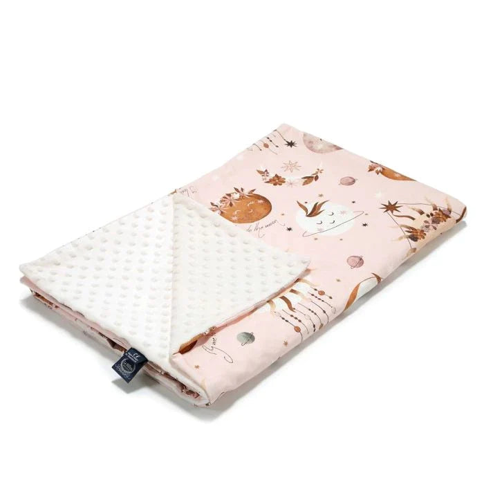 Una manta para bebé de doble cara excepcionalmente suave y delicada de La Millou con el precioso diseño Fly Me To The Moon Nude.