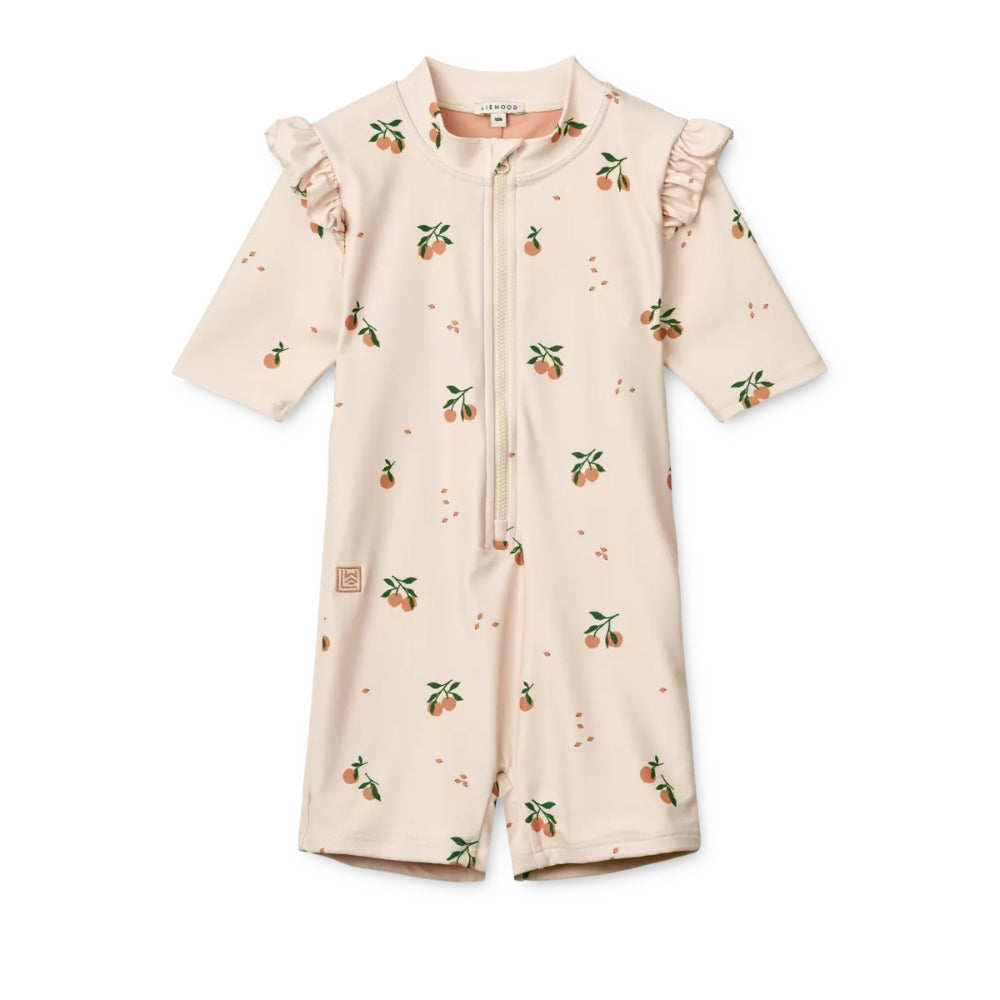 Con mangas cortas, piernas cortas y cuello alto, el bañador Liewood ofrece protección solar UV 40+, perfecto para los días de verano.