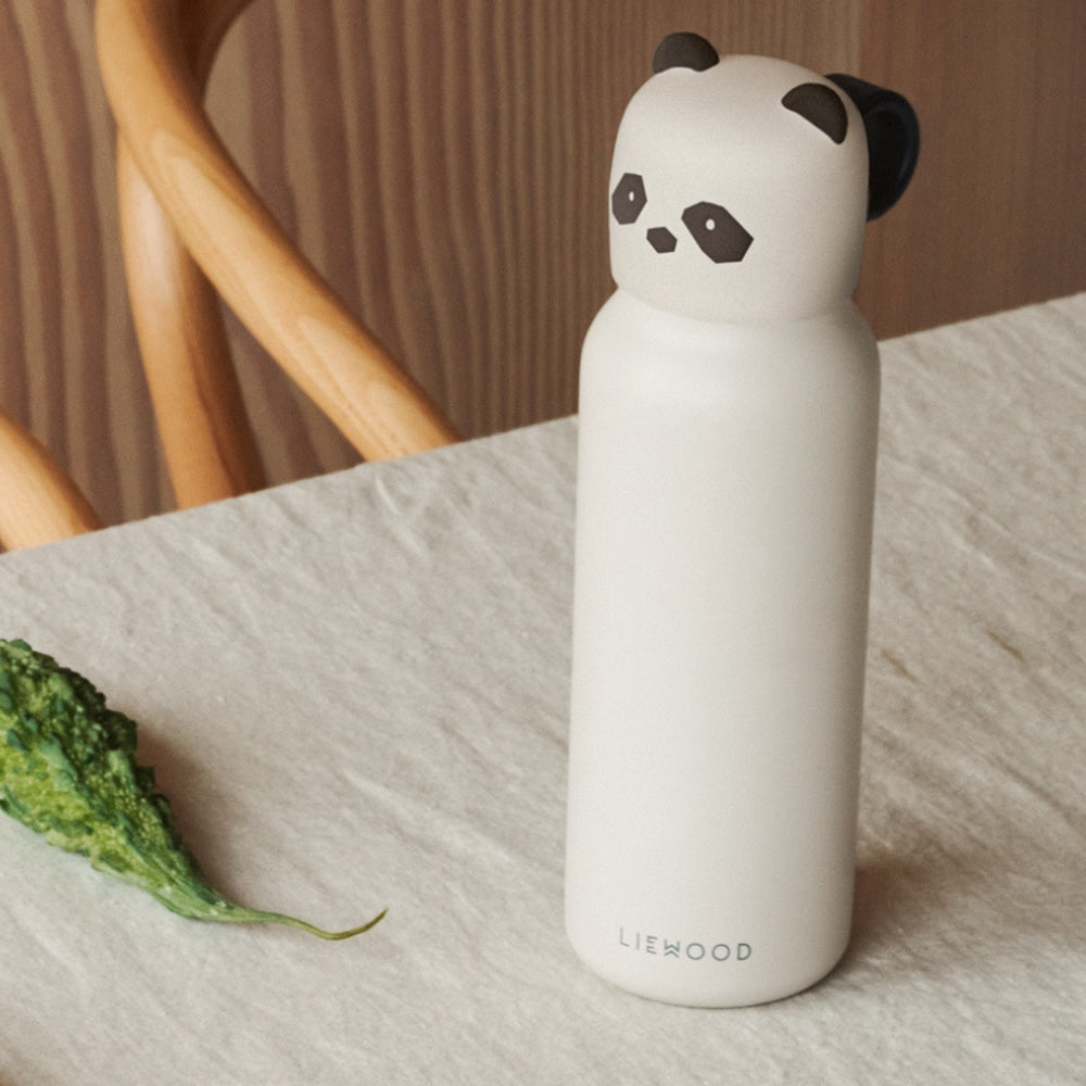 Una estupenda botella térmica para niños con cabeza de panda Falk Sandy de Liewood.
