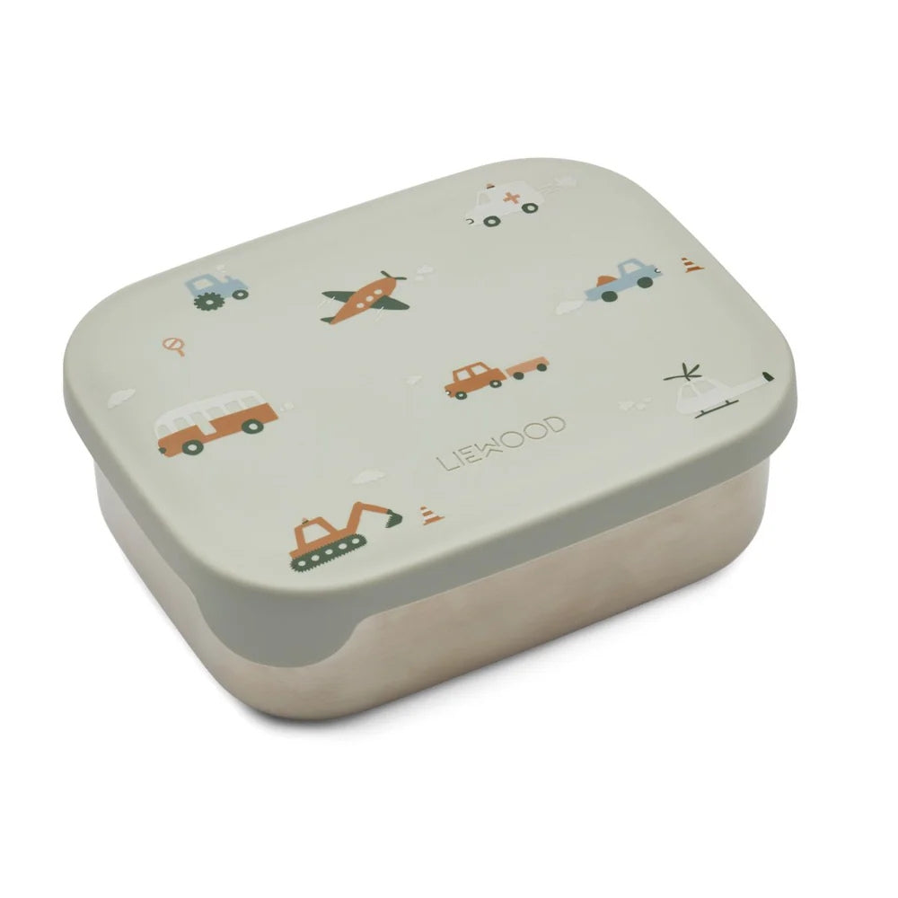 Liewood Fiambrera para niños Arthur con estampado de vehículos/mezcla de azul paloma 900 ml