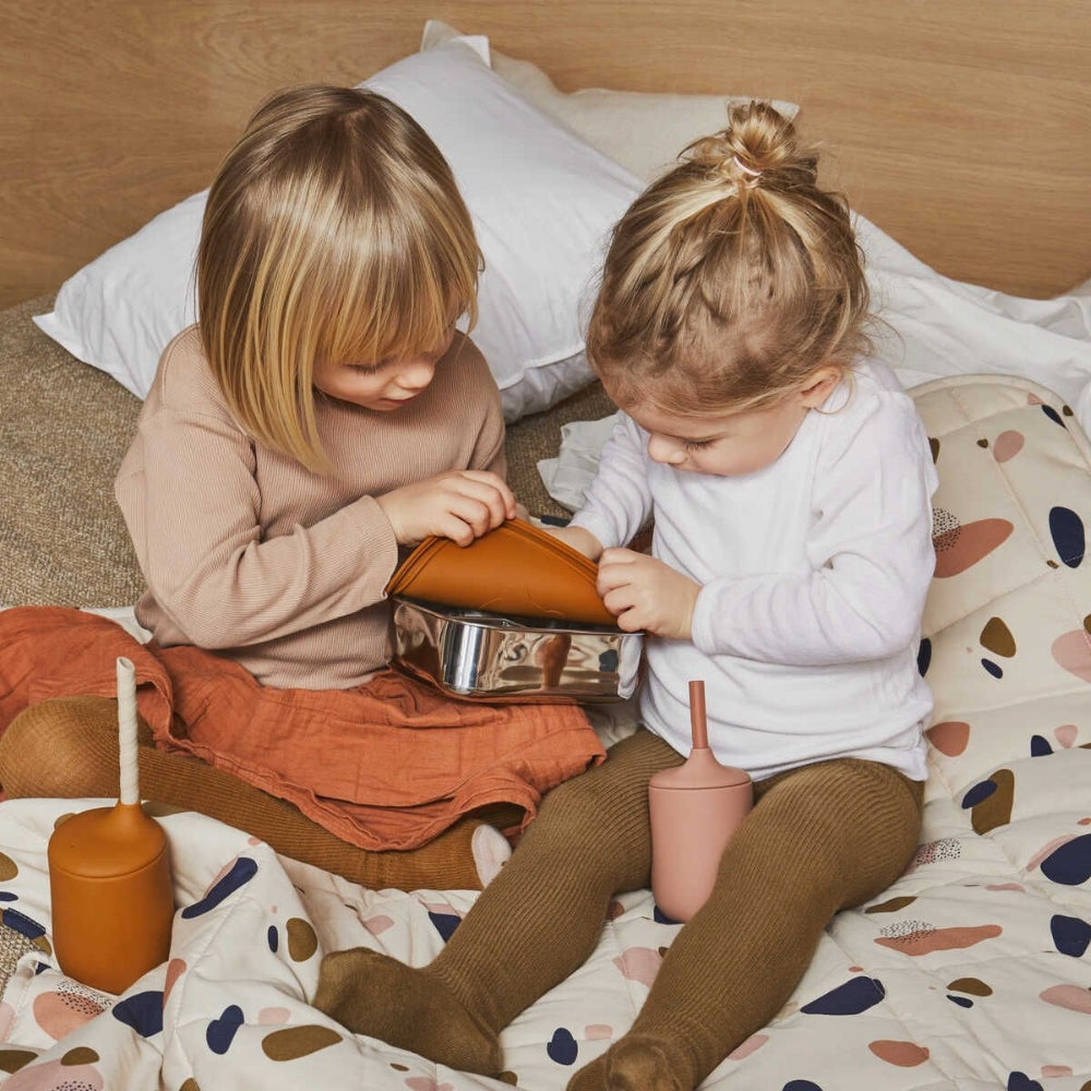 Vaso de silicona con pajita Ellis Sippy de Liewood, mezcla de rosa y terracota.