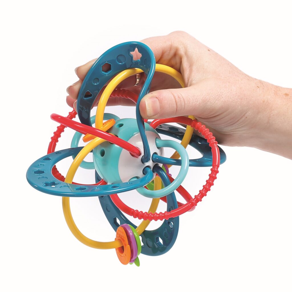 El juguete diseñado por Ludi es fácil de agarrar y sostener: las diferentes lengüetas sensoriales permiten que las piezas se muevan y giren, estimulando las habilidades motoras finas y la coordinación motora.