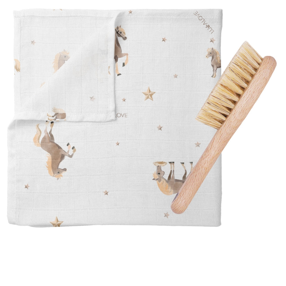 LullaLove Cepillo Baby para la caspa en un set con una lavadora Caballos
