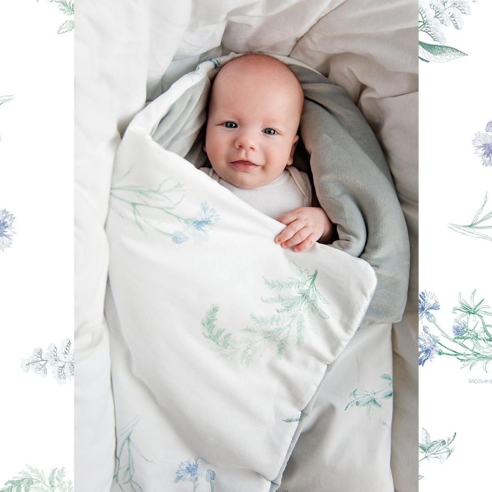 Una colcha única para bebés y niños pequeños para todo el año, Herbal Blue, de Lullalove.