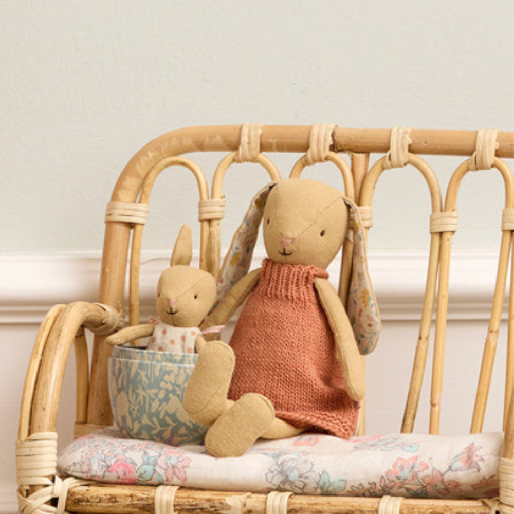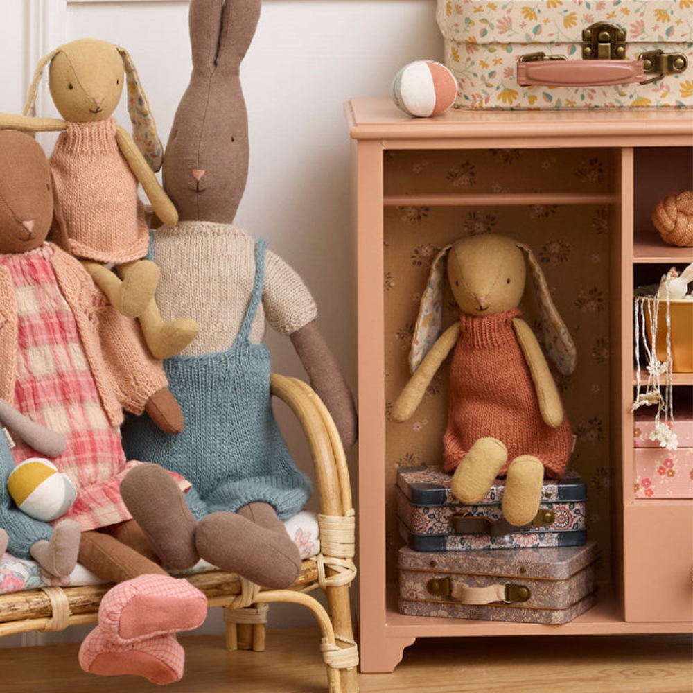 Un juguete que crece con tu hijo: el conejito con vestido fomenta el juego amoroso, los juegos de rol y la invención de tus propias historias, y el estilo atemporal de Maileg combina de maravilla con la decoración de tu habitación.