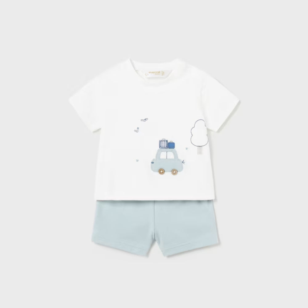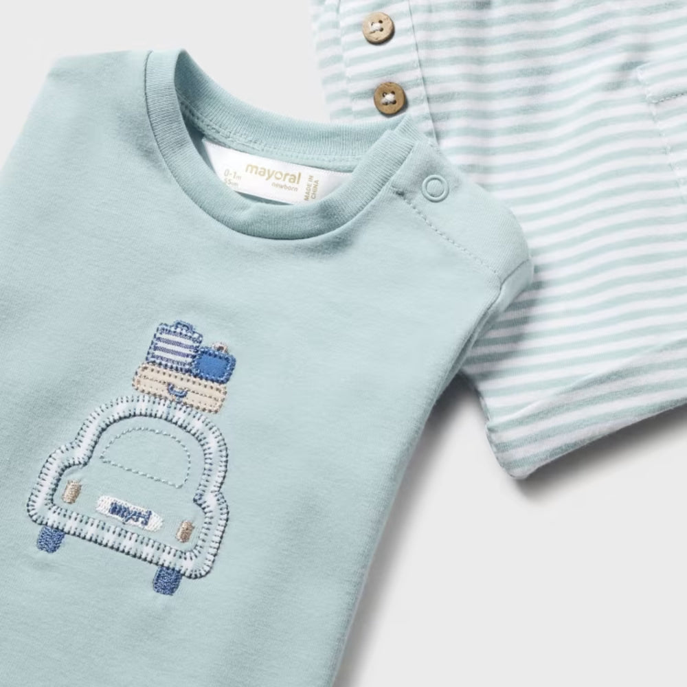 El conjunto de Mayoral consta de dos conjuntos de camisetas de manga corta y pantalones cortos a juego, perfectos para jugar.