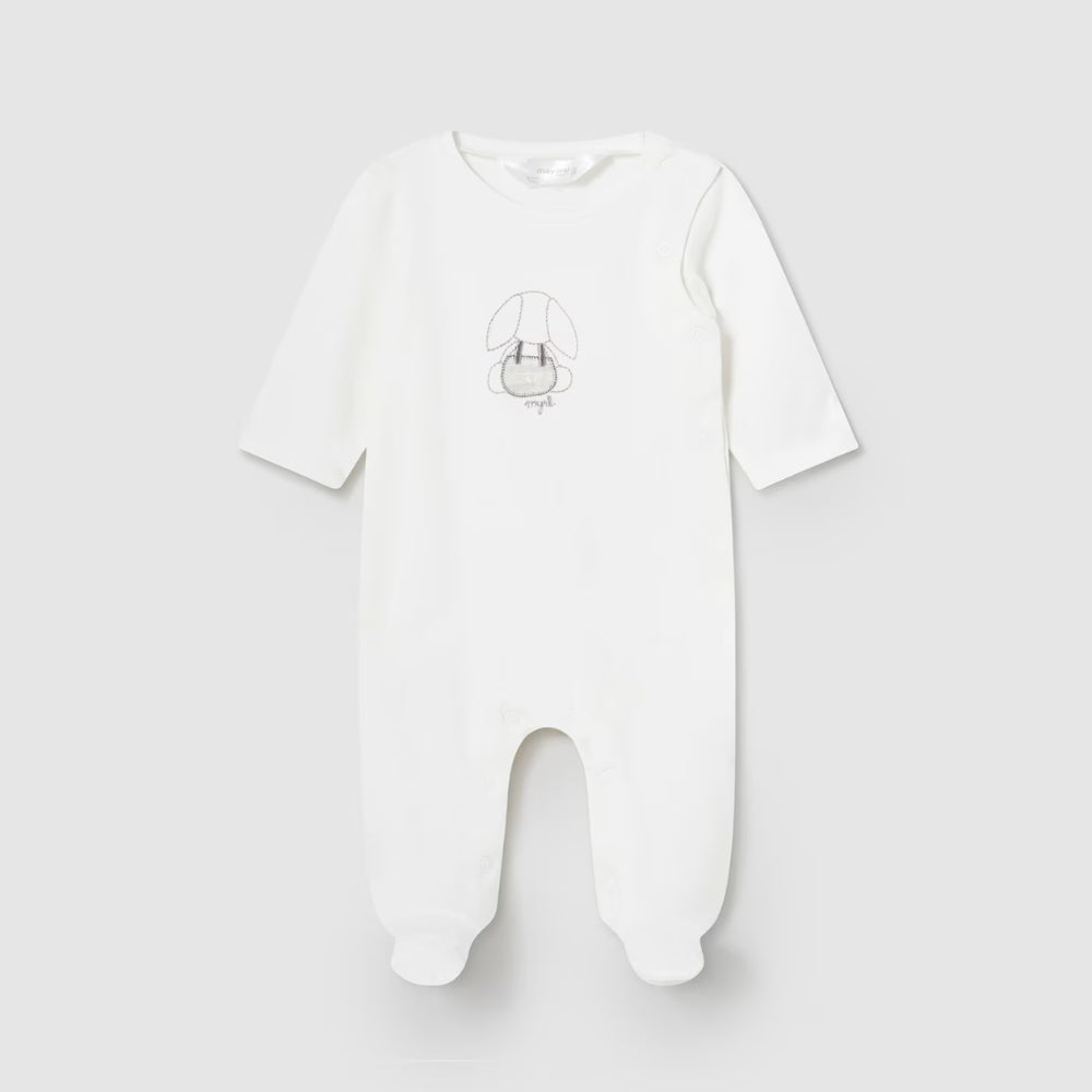 El pelele de Mayoral tiene un cierre de presión con tela que recorre toda la longitud del body, lo que facilita el cambio de pañal.