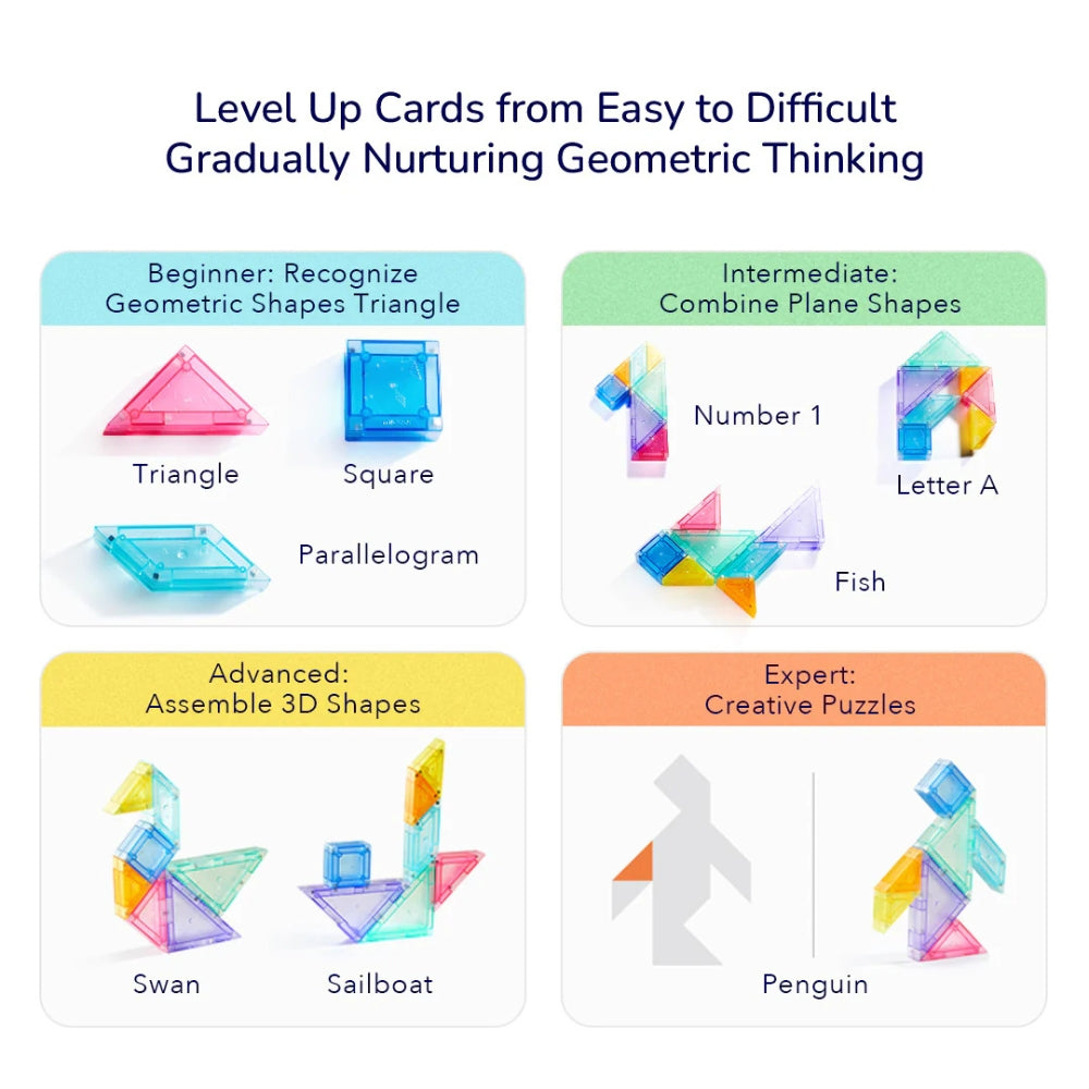 El juguete Tangram Mideer está diseñado para desarrollar las habilidades cognitivas, el pensamiento lógico y la capacidad de resolución de problemas.