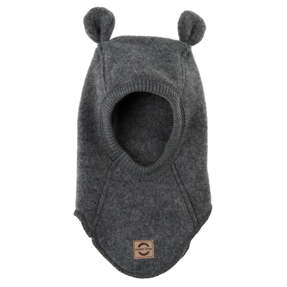 Mikk Line Pasamontañas infantil de lana merino con orejas , color antracita jaspeado.