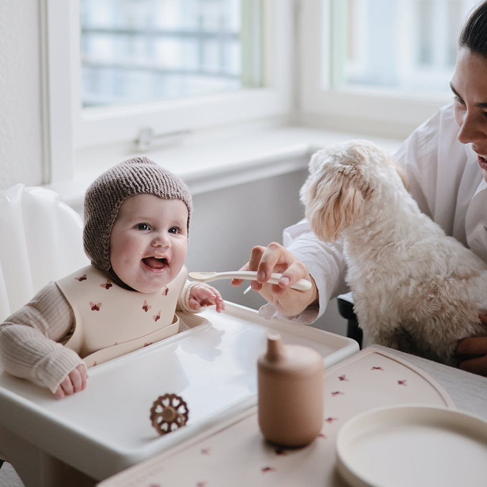 El mantel individual está disponible en hermosos colores inspirados en la naturaleza, lo que facilita combinarlo con tu babero Mushie u otros artículos de vajilla.