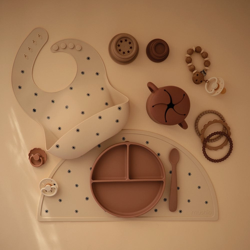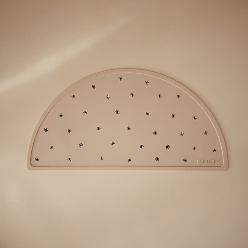 El mantel individual de Mushie facilita el aprendizaje para comer de forma independiente.