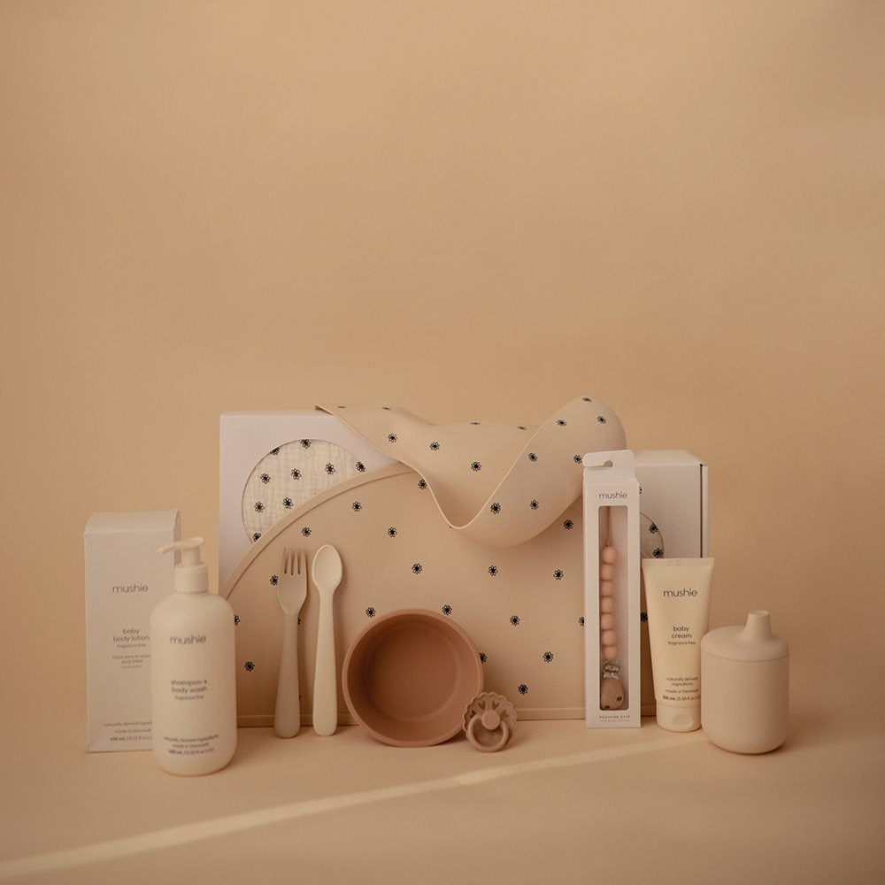 El mantel está disponible en bonitos colores inspirados en la naturaleza, lo que facilita combinarlo con el babero Mushie u otros artículos de vajilla.