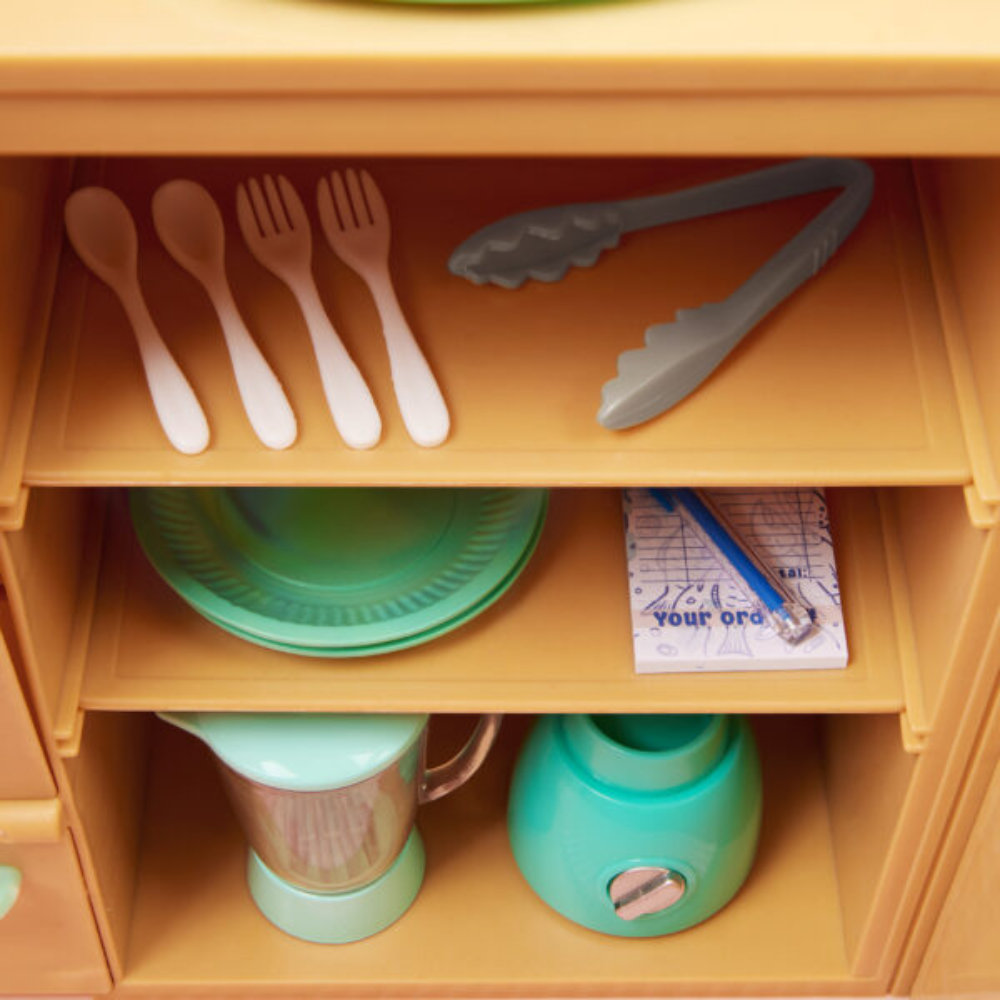 - El set incluye: furgoneta para transportar, preparar y servir comidas, aperitivos y bebidas, mesa plegable para los clientes, carteles con el menú, asiento del conductor, compartimento en el salpicadero, cocina con horno, fogones y fregadero, comidas, aperitivos y bebidas, salero y pimentero, cubiertos, terminal de pago, tarjeta de crédito/pago, dispensador de servilletas con servilletas, libro de pedidos, equipamiento de cocina.