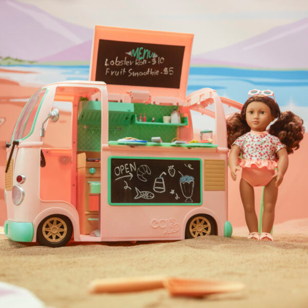 El camión de comida Summer Food Truck de Our Generation es una cocina móvil llena de sabores veraniegos para muñecas.