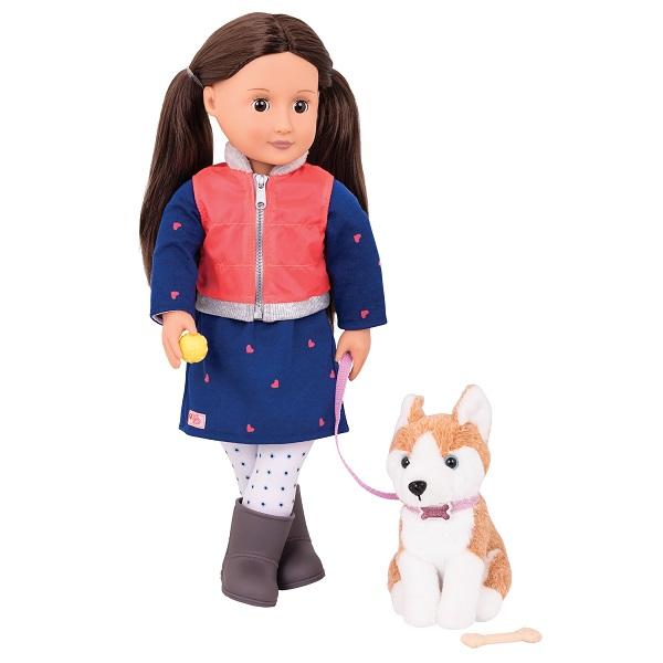Our Generation Muñeca Leslie de 46 cm de con cachorro Husky