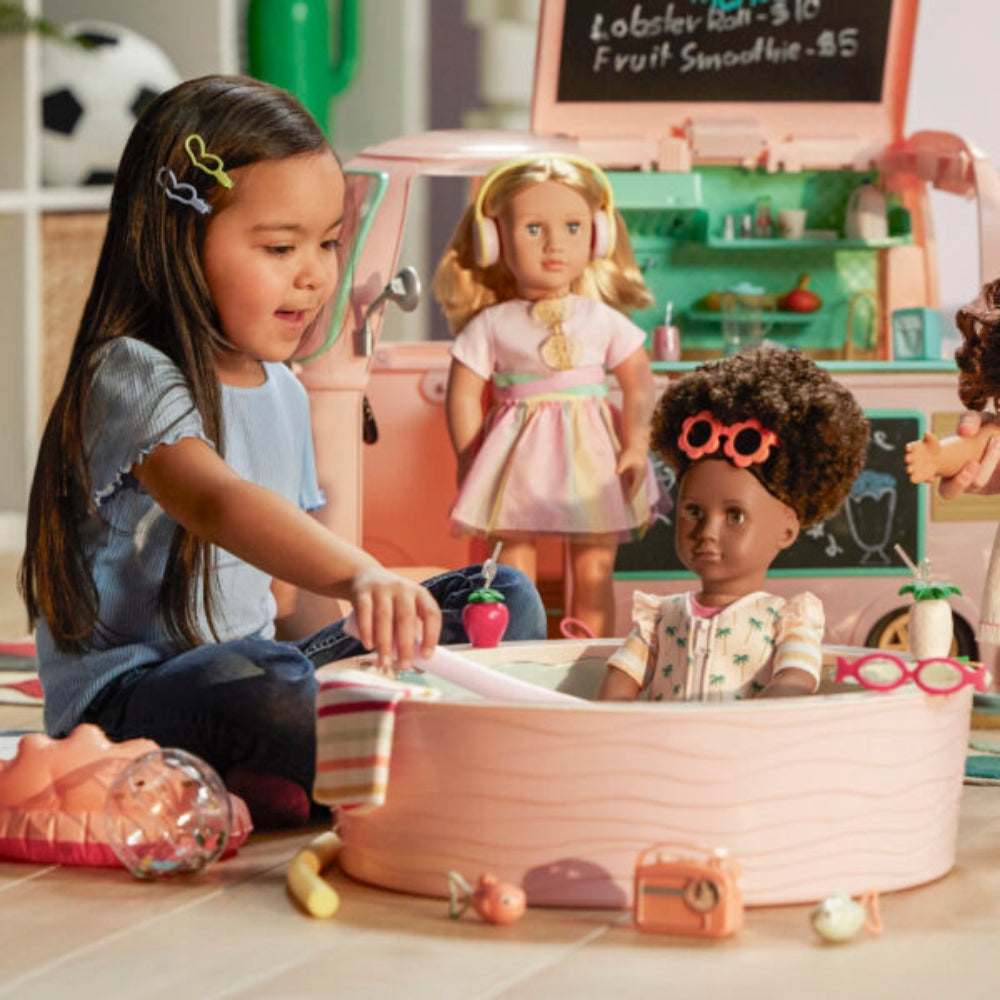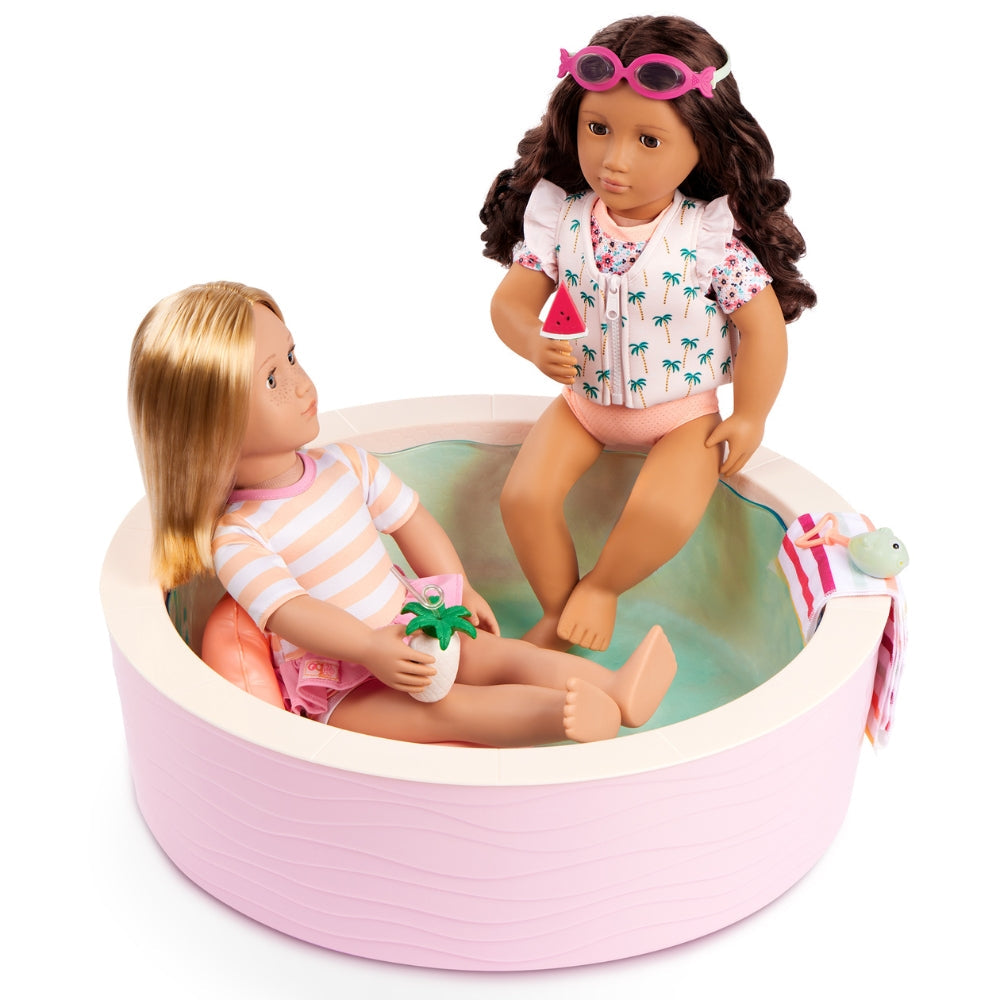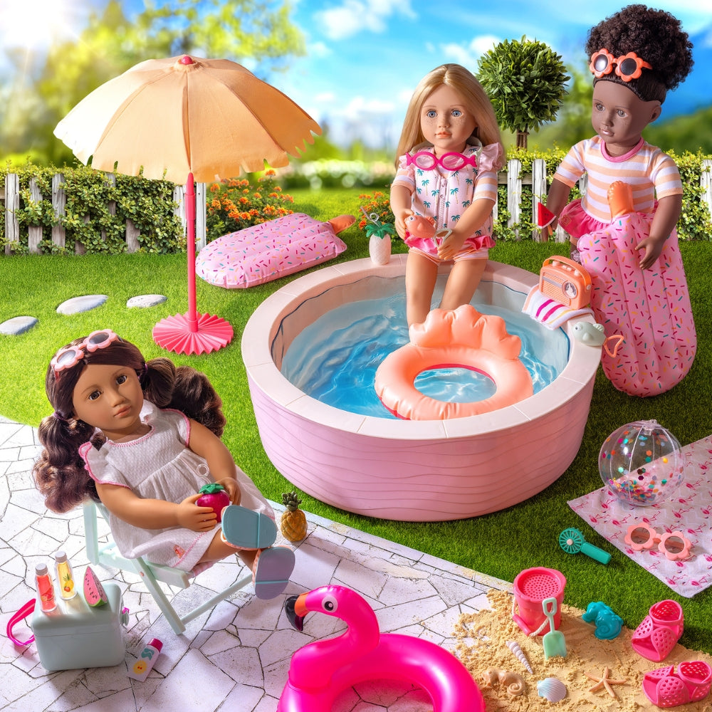 La piscina para muñecas Our Generation es perfecta para los niños a los que les encanta crear historias veraniegas llenas de sol y diversión.