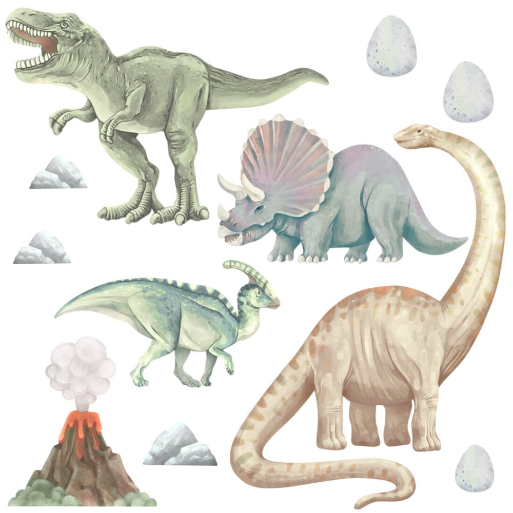 La colección de adhesivos decorativos para niños dinosaurios ha sido creada para los amantes de la prehistoria.