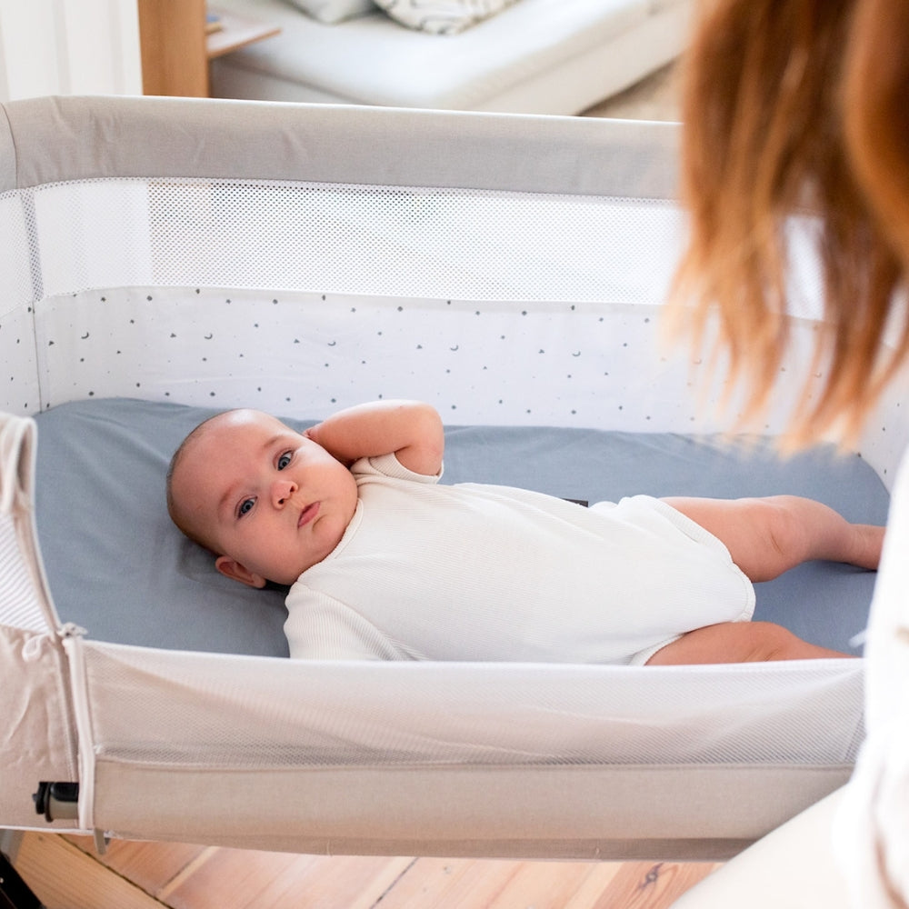 Se adapta a todas las cunas disponibles y a diferentes alturas de colchón.