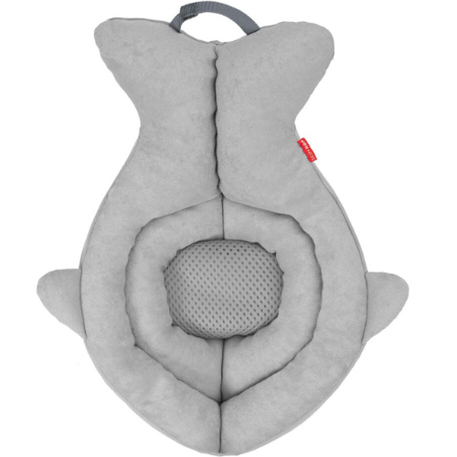 El accesorio de Skip Hop está fabricado con suave tejido de rizo y cuenta con una cola de ballena acolchada para proporcionar apoyo a la cabeza de tu pequeño.