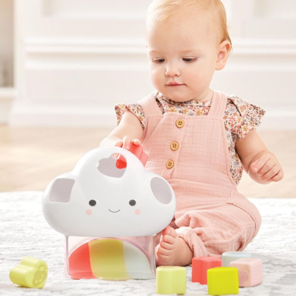 Este adorable amigo en forma de nube es más que un simple clasificador de formas, ya que introduce al bebé en el fascinante mundo de las emociones, el tiempo y los colores.