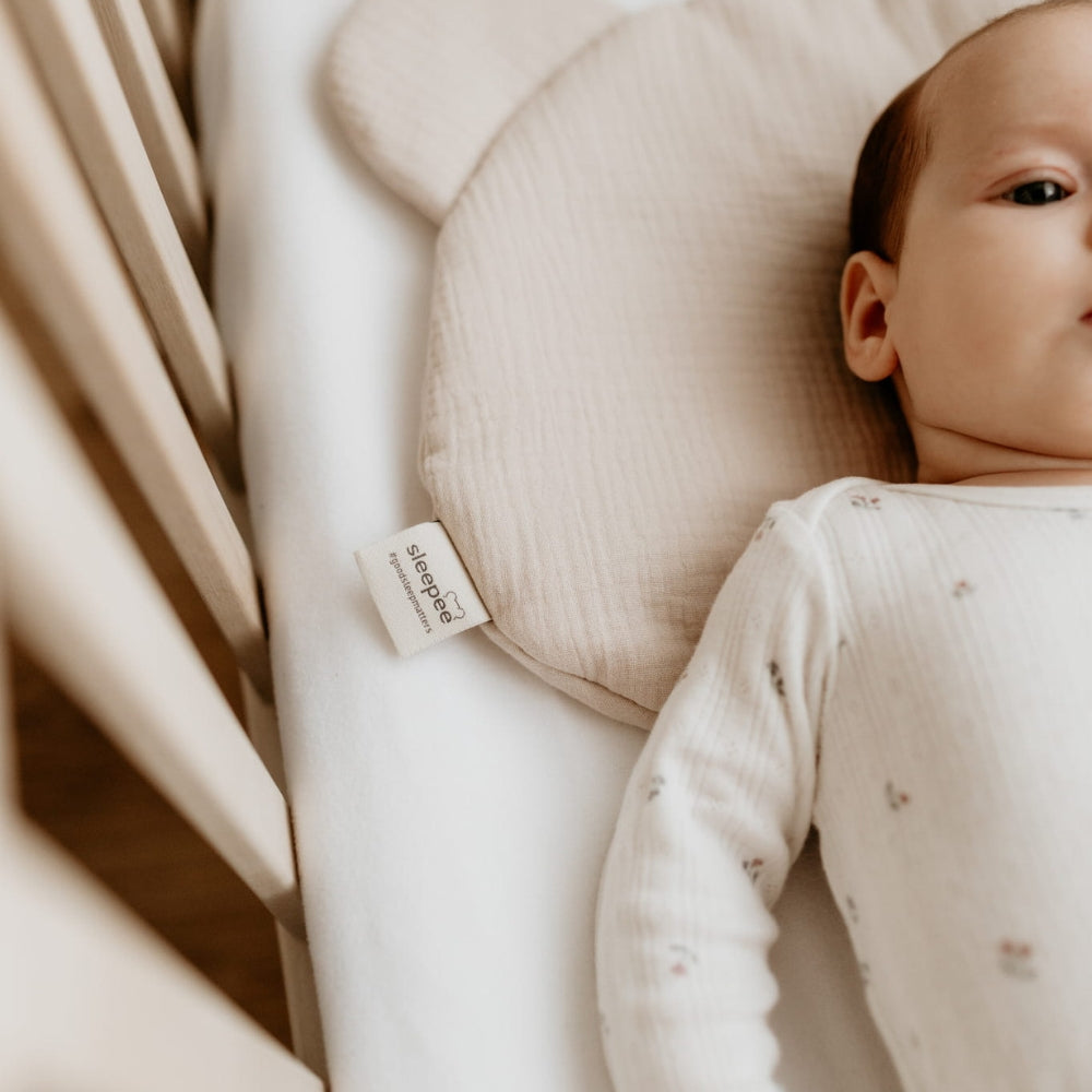 La almohada para bebés Sleepee Teddy Bear es ideal como reposacabezas en el cochecito, como apoyo al sostener al bebé en brazos, tumbado en el sofá o descansando en una mecedora.