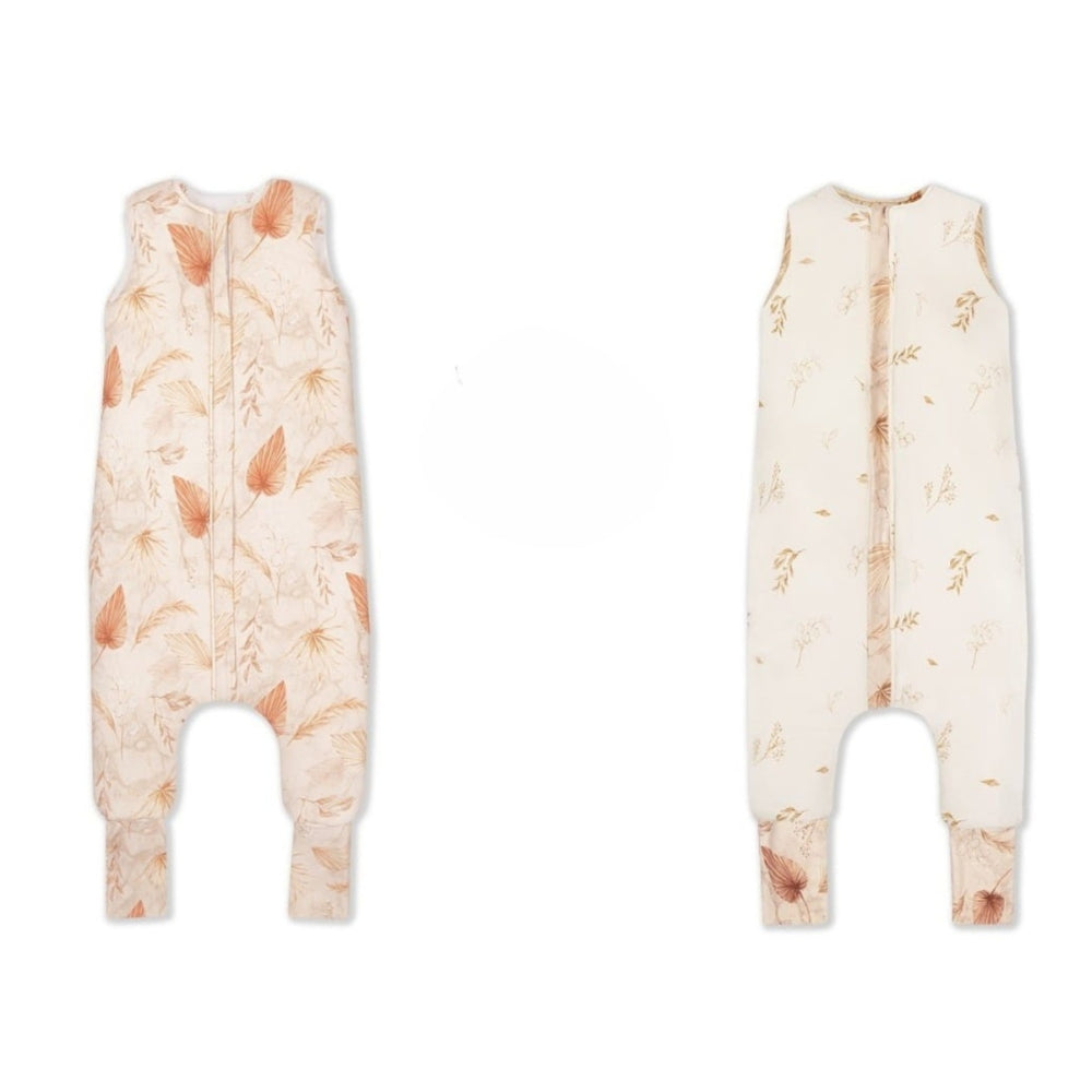 Sleepee Saco de dormir de doble cara con pies, color arena bohemio y botánico, para niños de 1 a 2 años.