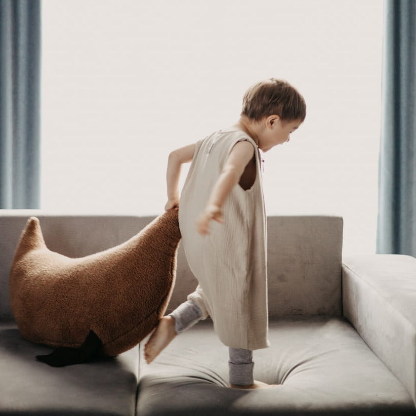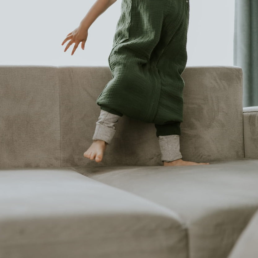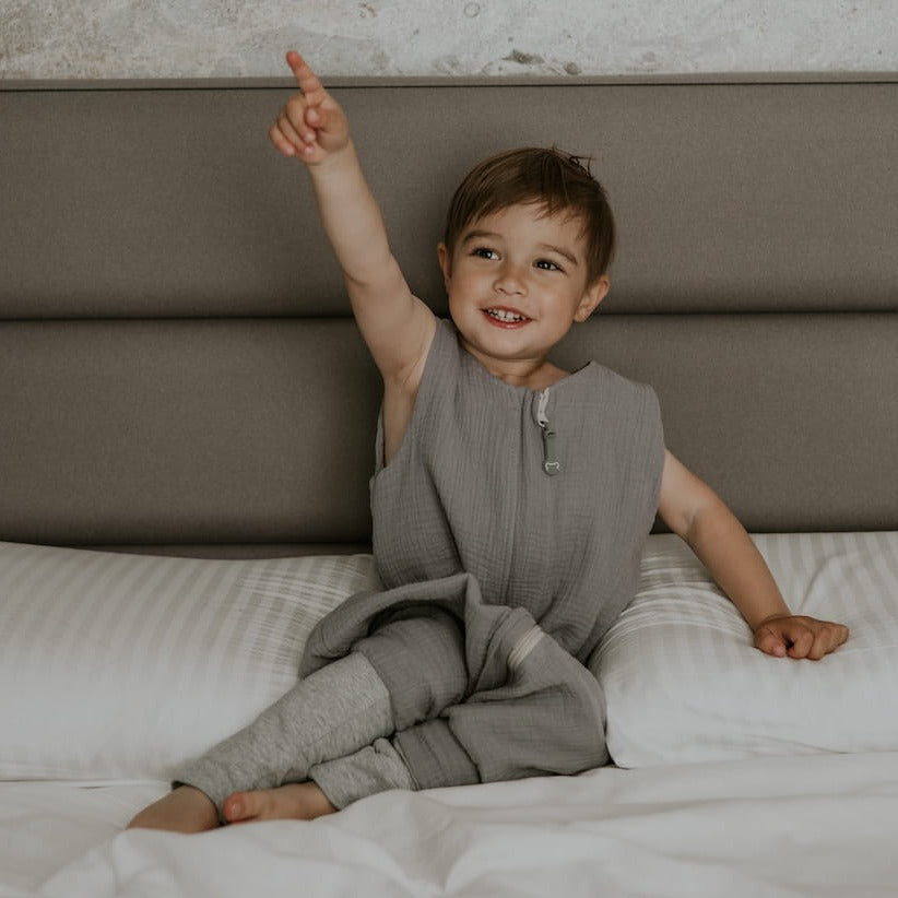 El saco de dormir Sleepee con piernas está fabricado en muselina suave, lo que permite que la piel del bebé respire.