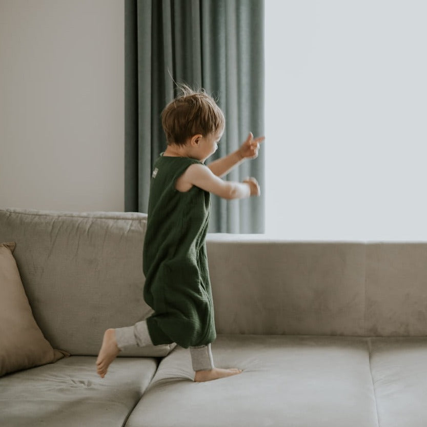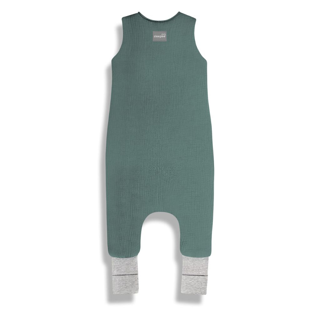 Saco de dormir Sleepee de muselina con piernas en color verde mar.