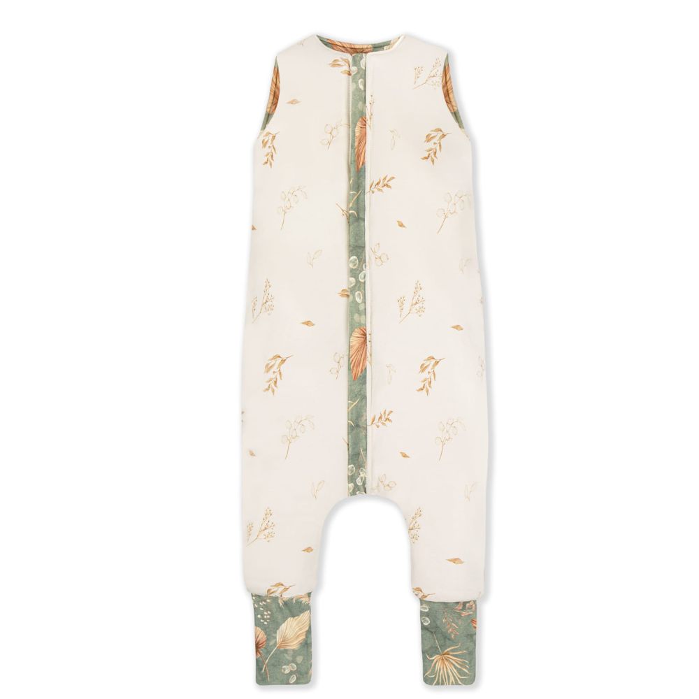 Bonito saco de dormir Sleepee bohemian green, bohemian botanic con pies, de doble cara.