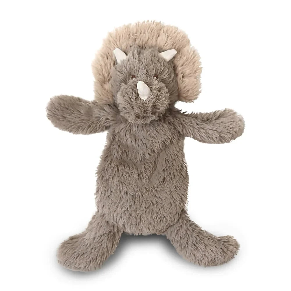 La mascota dinosaurio es un osito de peluche único diseñado con peso adicional en la barriga, las manos y los pies.