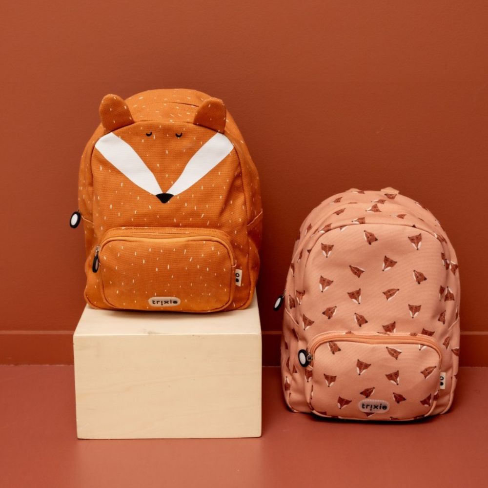La mochila infantil tiene un compartimento grande y un pequeño bolsillo delantero.