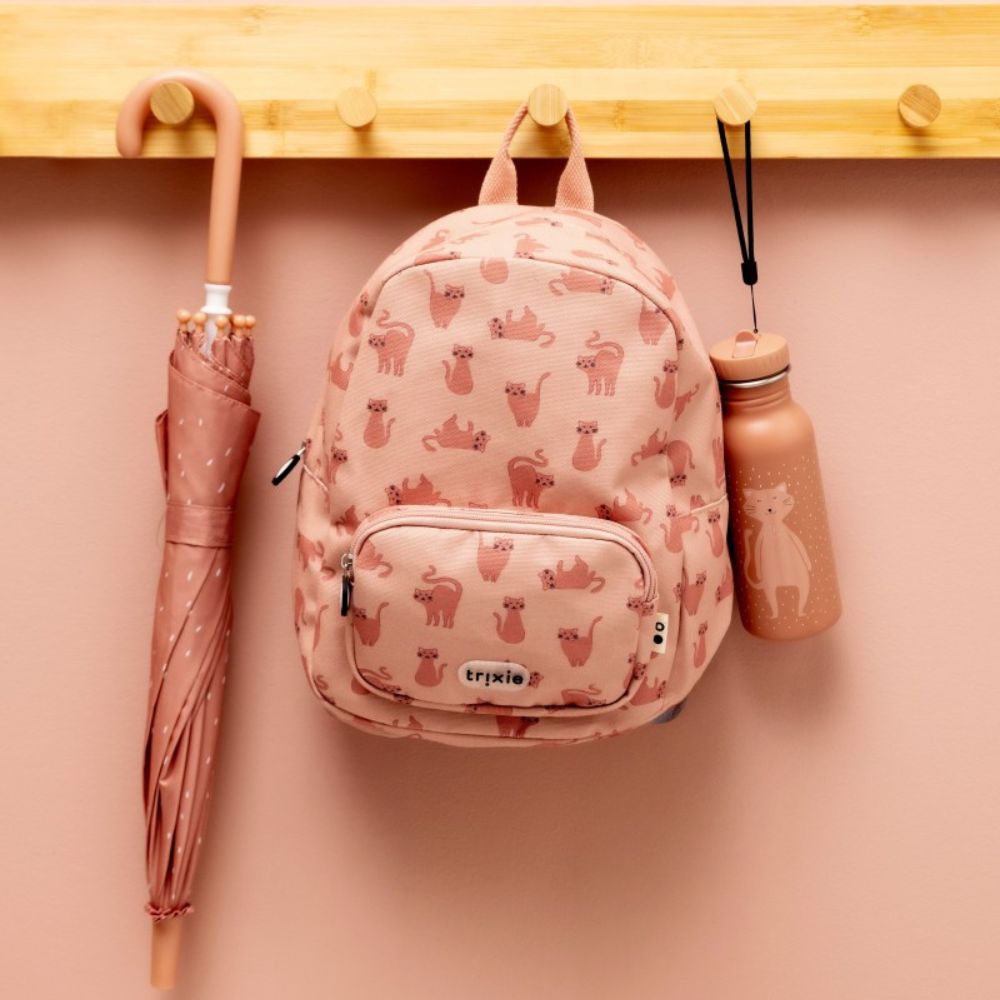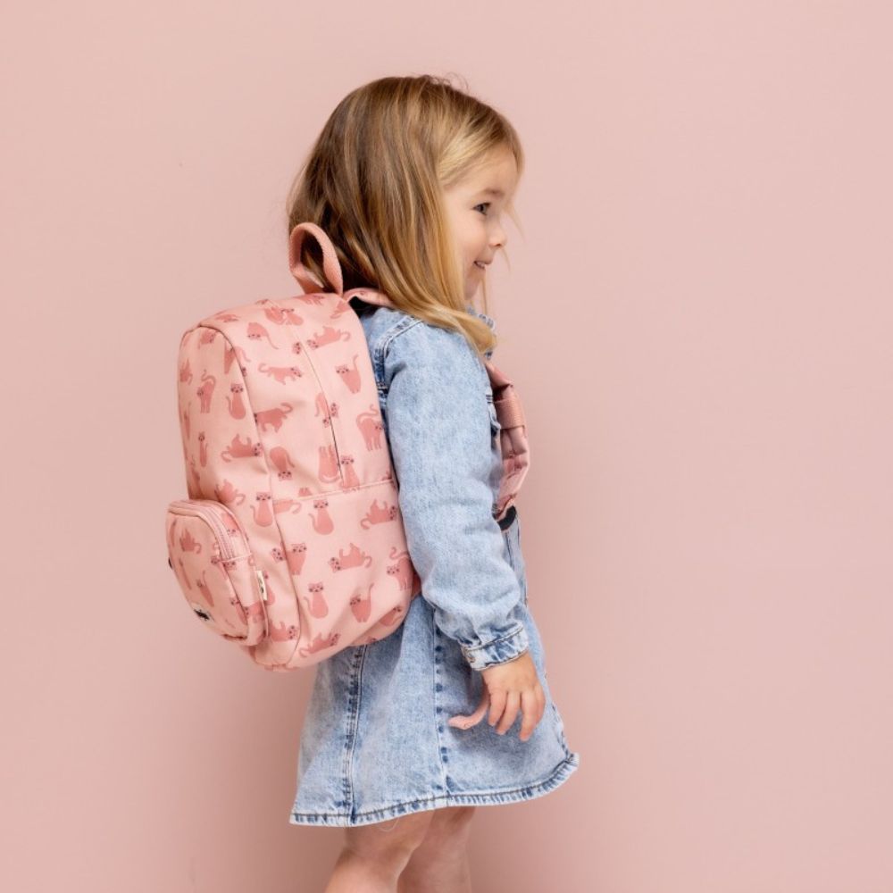 La mochila infantil tiene un compartimento grande y un pequeño bolsillo delantero